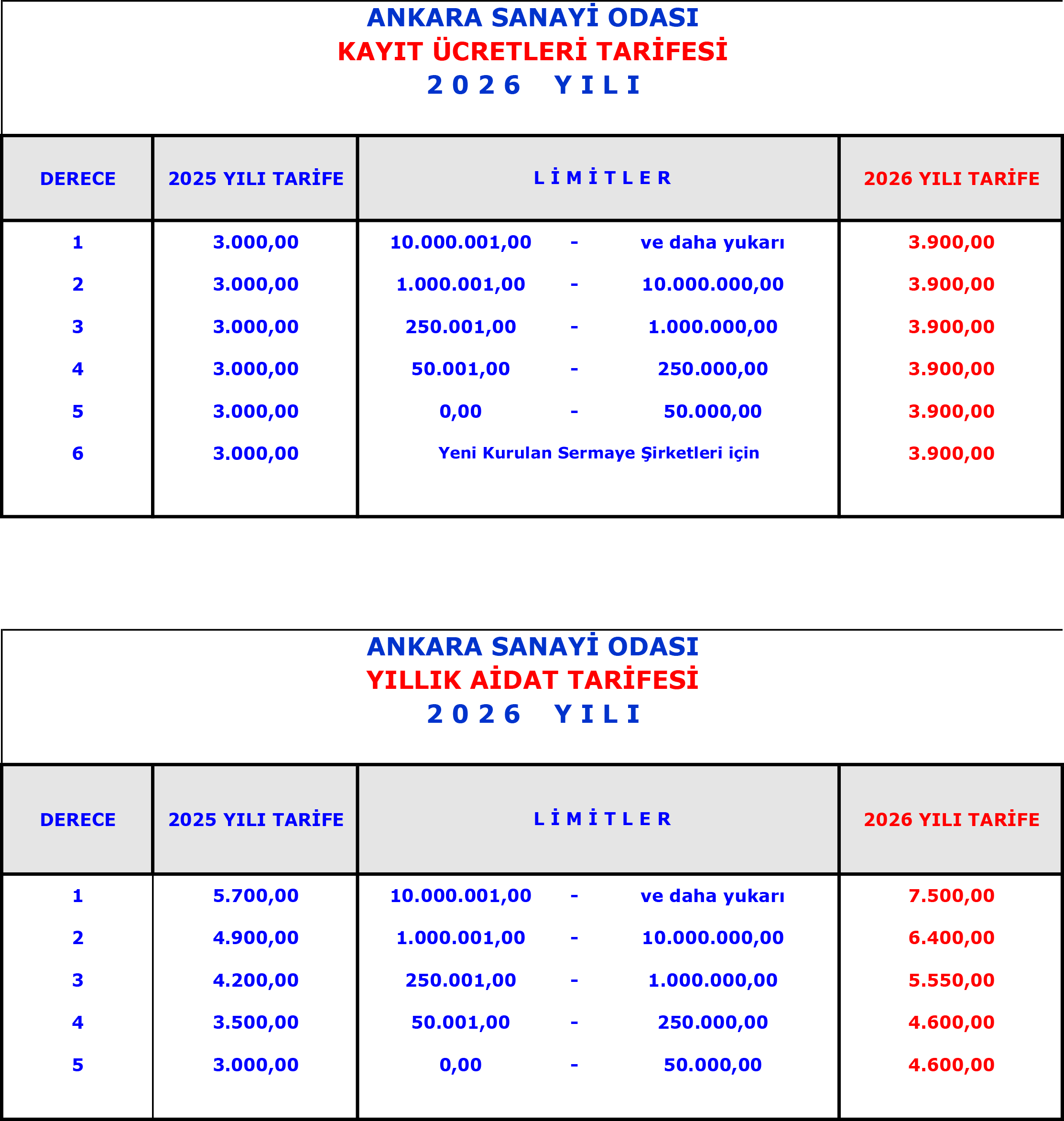 | ASO Kapasite Raporunda Değişiklik İşlemi Ücretleri | ||