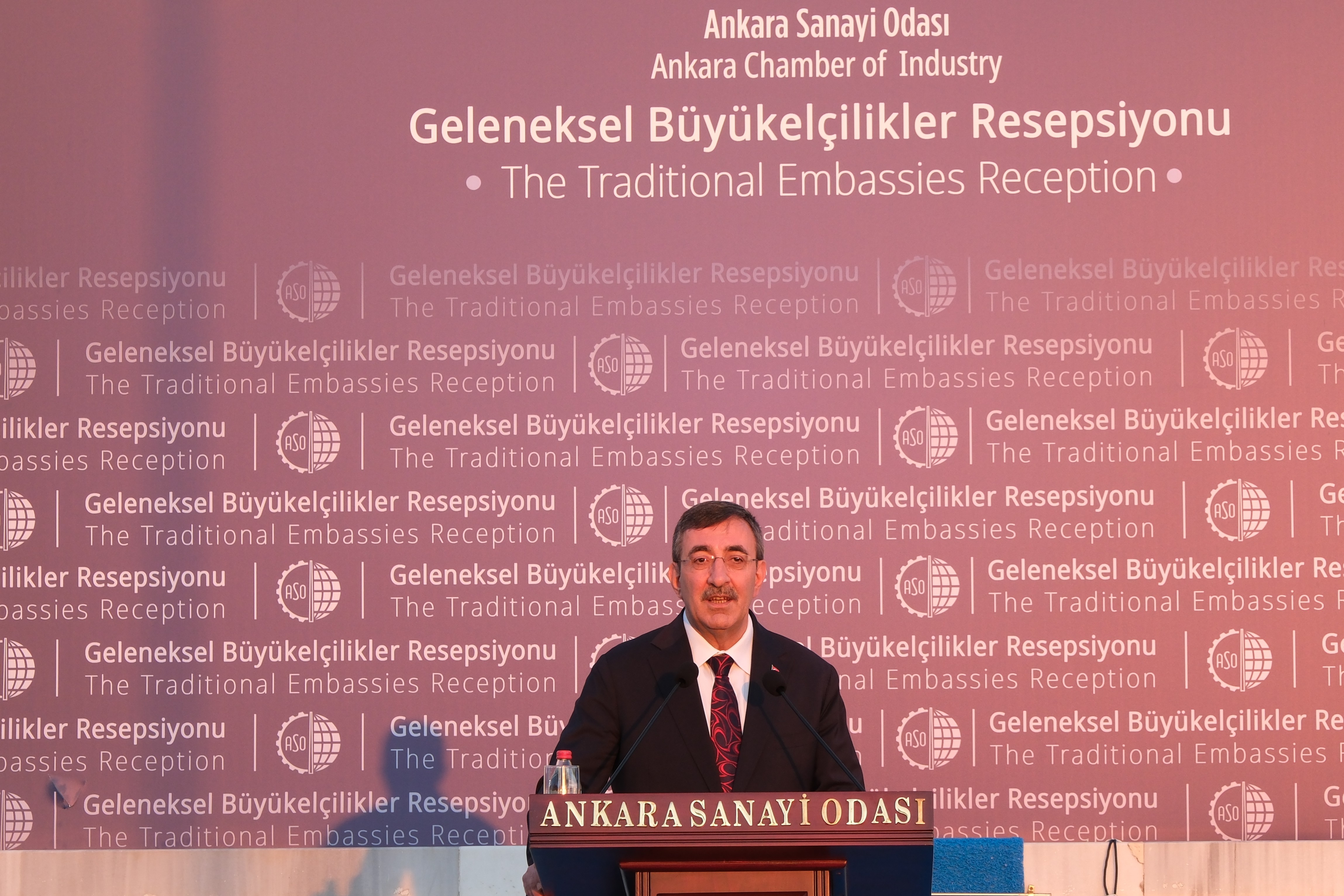 Cumhurbaşkanı Yardımcısı Cevdet Yılmaz da konuşmasında, yabancı diplomatik misyon ile iş dünyasının bir araya geldiği Geleneksel Büyükelçilikler Resepsiyonu’nun önemine dikkat çekerek, bu etkinliğin düzenlenmesinden dolayı Ankara Sanayi Odası Yönetimine teşekkür etti.