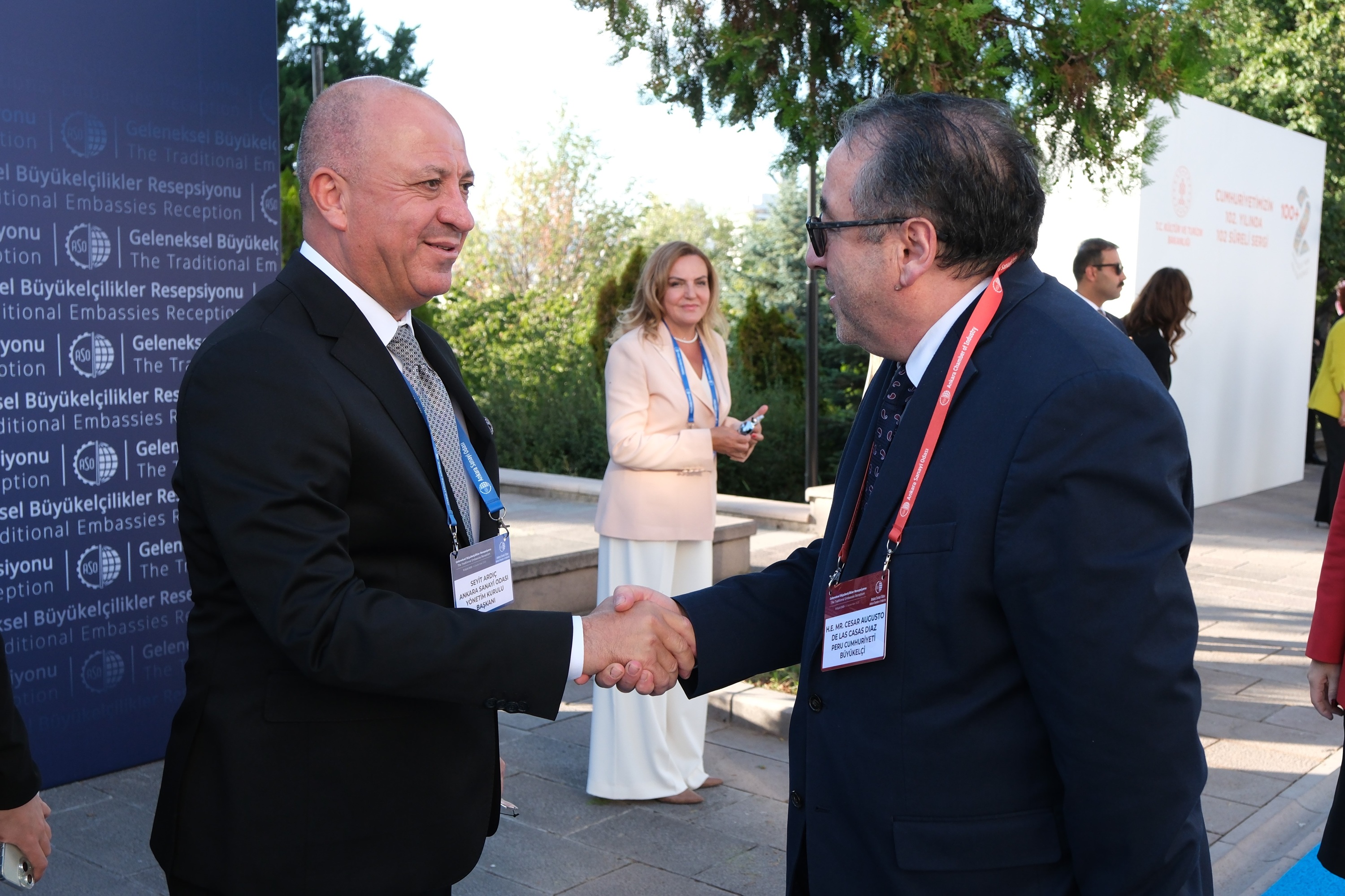 Ankara Sanayi Odası’nın (ASO) 14. Geleneksel Büyükelçilikler Resepsiyonu, Cumhurbaşkanı Cevdet Yılmaz’ın katılımıyla yabancı misyon, iş, siyaset ve medya dünyasını bir araya getirdi. 100’ü aşkın ülkeden 200’e yakın yabancı büyükelçi ve diplomatın yanı sıra, çok sayıda Bakan Yardımcısı, milletvekili, siyasi partilerin temsilcileri, Ankara Valisi Vasip Şahin, Ankara Büyükşehir Belediye Başkanı Mansur Yavaş, rektörler, ASO Meclis ve Komite Üyeleri, uluslararası kuruluşların üst düzey yetkilileri, sivil toplum kuruluşlarının başkanları ve iş dünyasının önde gelen isimlerinin katılımıyla gerçekleşen resepsiyonun adresi her yıl olduğu gibi Ankara Etnografya Müzesi oldu.