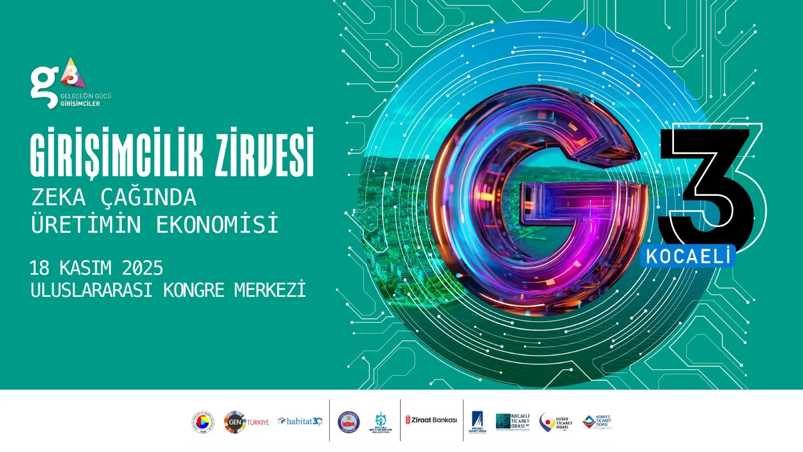 Türkiye Odalar ve Borsalar Birliği'nden (TOBB) gelen yazıya istinaden; TOBB, Habitat Derneği ve GEN Türkiye koordinasyonuyla düzenlenen G3 Forum Girişimcilik Zirvesinin, bu yıl Kocaeli Valiliği, Kocaeli Büyükşehir Belediyesi ve Ziraat Bankası'nın katkılarıyla, Kocaeli Sanayi Odası, Kocaeli Ticaret Odası, Gebze Ticaret Odası ve Körfez Ticaret Odası'nın ev sahipliğinde "Zeka Çağında Üretimin Ekonomisi" teması ile 18 Kasım 2025 Salı günü Kocaeli Uluslararası Kongre Merkezi'nde gerçekleştirileceği bilgisi verilmiştir.