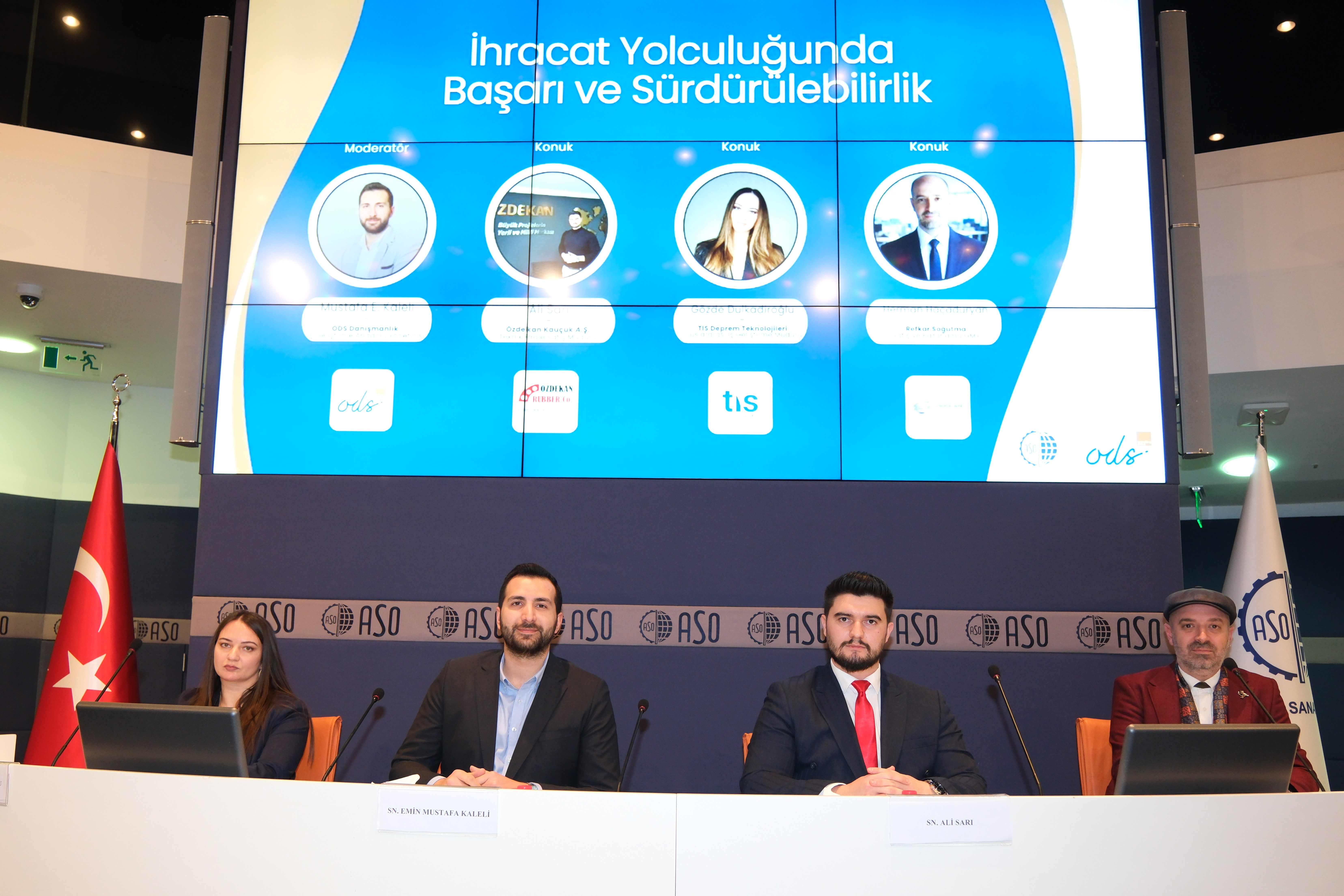 Kamu kurumları, finans kuruluşları ve özel sektör temsilcilerini bir araya getiren etkinlikte, firmaların küresel pazarlara açılma süreçlerine ilişkin güncel gelişmeler ve uygulamaya dönük deneyimler ele alındı. Toplantıya, ASO Yönetim Kurulu Üyesi Halit Erol, ODS Danışmanlık CEO’su Onur Seçkin, ASO Genel Sekreter Yardımcısı Dr. Ahmet Dinçer ve çok sayıda ASO üyesi firma temsilcisi katıldı.