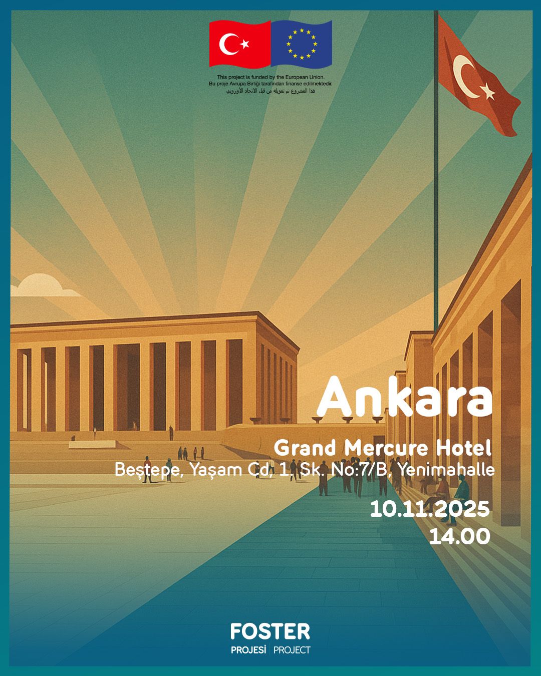 Avrupa Birliği Türkiye Delegasyonu tarafından finanse edilen, KfW Kalkınma Bankası tarafından yönetilen ve KOSGEB tarafından yürütülen FOSTER SMEs (FOSTER II) Projesi kapsamında 10 Kasım 2025 tarihinde saat 14.00'da Grand Mercure Hotel'de "FOSTER II Projesi Bilgilendirme Toplantı" gerçekleştirilecektir.