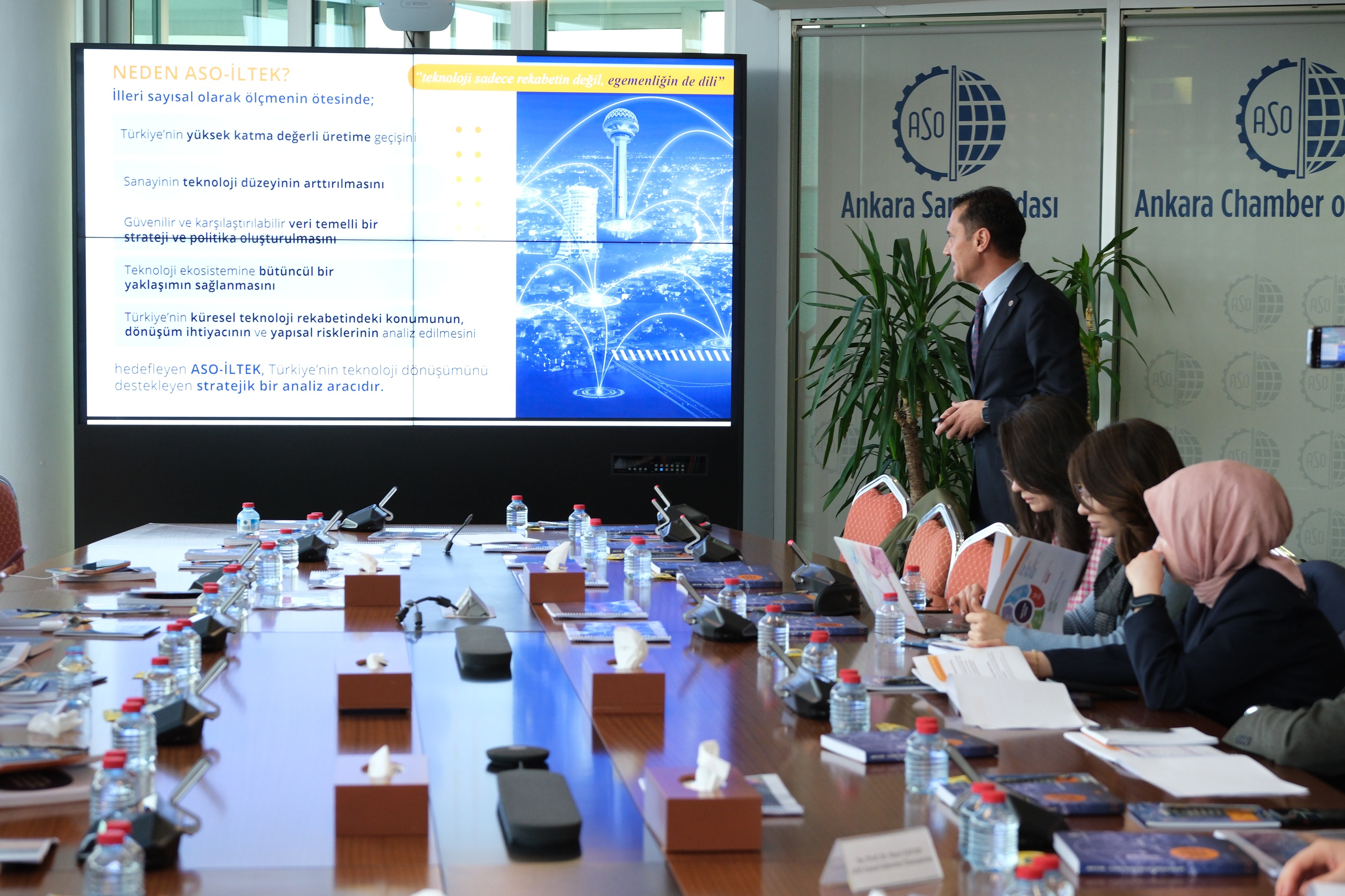 Basın toplantısı, ASO Genel Sekreteri ve ASO Teknopark Genel Müdürü Prof. Dr. Mehmet Cansız’ın ASO-İLTEK 2025 sonuçlarına ilişkin sunumu ile devam etti.