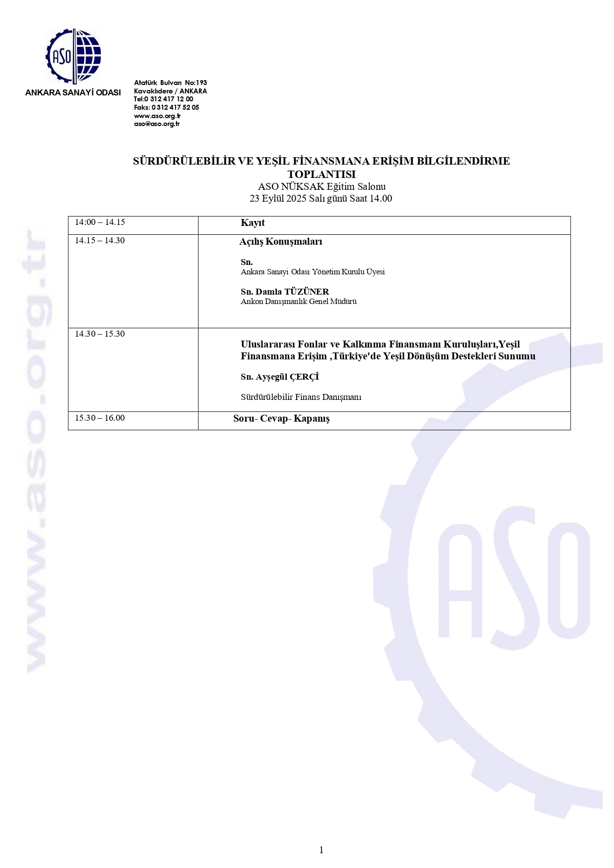 Söz konusu toplantıya katılmak isteyen üyelerimizin 22 Eylül 2025 Pazartesi günü saat 18:00'a kadar https://www.aso.org.tr/form/surdurulebilir-ve-yesil-finansmana-erisim-bilgilendirme-toplantisi-302 linkinde yer alan katılım formunu doldurmaları gerekmektedir.